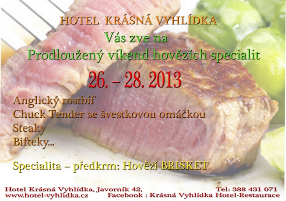 Hotel Krásná Vyhlídka zve všechny příznivce dobrého jídla na prodloužený výkend s hovězími specialitami.