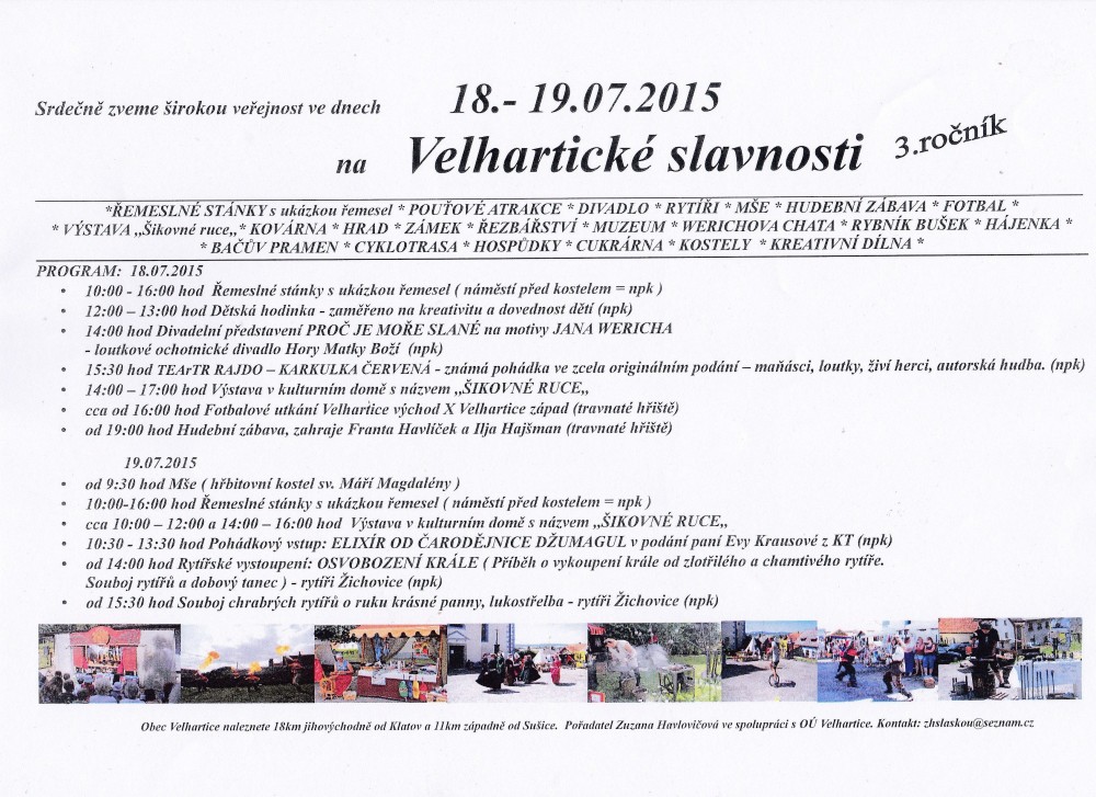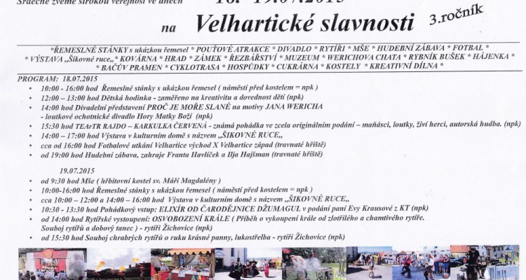 Srdečně zveme širokou veřejnost ve dnech 18.- 19.07.2015 na Velhartické slavnosti