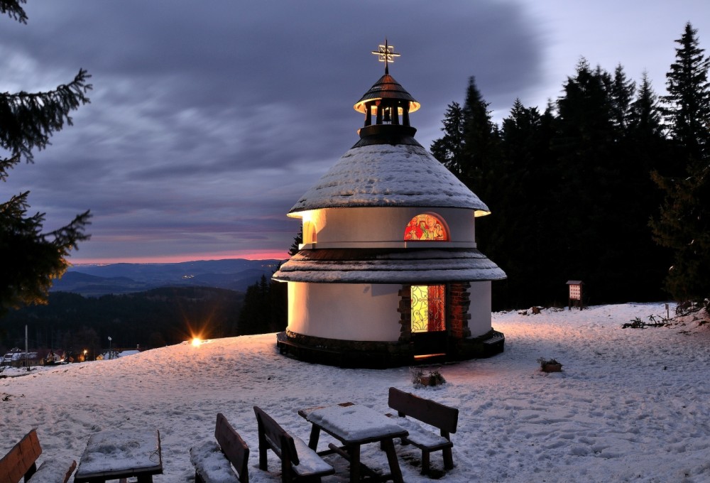 Rotunda byla postavena v letech 1939-1940 na svahu nejvyšší hory tehdejšího Protektorátu Čechy a Morava. Kaple stála na nových hranicích Čech a...