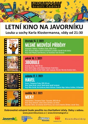 Na javorník přijedou báječní bratři s klikou. Během čtyř dní budou promítat na louce u sochy Karla Klostermana. Vstupné je dobrovolné a bude použito na charitativné účely. Začátek promítání je vždy ve 21:30.