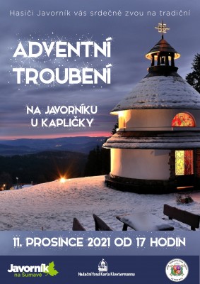 Již tradičně Vás zveme v podvečerní čas ke kapličce sv. Antonína na Javorníku. Přijďte společně prožít vánoční atmosféru. Opět se rozezní vánoční melodie nejen v podání trubačů.