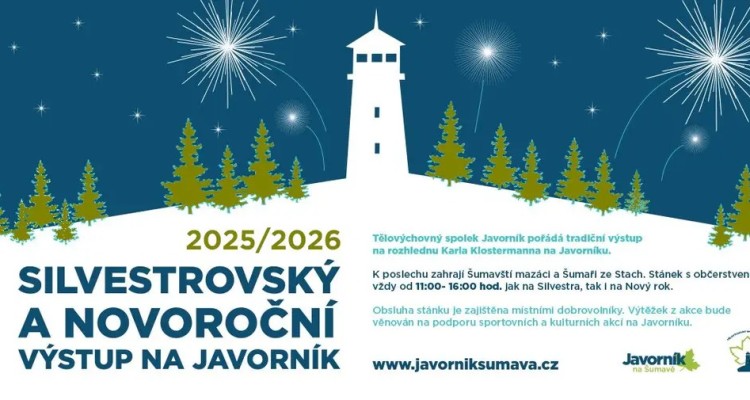 Tělovýchovný spolek Javorník pořádá tradiční výstup na rozhlednu Karla Klostermanna na Javorníku. K poslechu zahrají Šumavští mazáci a Šumaři ze Stach.