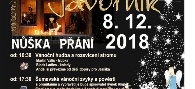 Srdečně Vás všechny zveme na velkou událost, která se bude konat na Javorníku. Společně rozsvítíme stromeček, ke skvěle atmosféře nám bude zpívat pěvecké seskupeni Black Ladies a na svůj průvod se vydají Lucie.