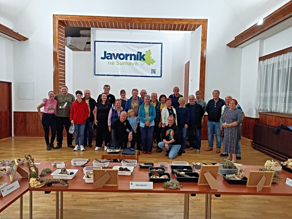 Na Javorníku se uskutečnil sedmý ročník „Houbařského víkendu na Javorníku“, na kterém se organizačně podílí také Česká Mykologická společnost. Situace sice nebyla „nadmíru výtečná“, neboť nám deštivé počasí velmi zkomplikovalo sběr hub a znemožnilo pořádání sobotní vycházky (v tomto ohledu jsme uposlechli i výzev hejtmana Jihočeského kraje, a i kdyby nepršelo, vycházka by se nekonala z důvodu rizika pádu stromů). Nicméně, nevzdali jsme se. Houby v blízkém okolí sice rostly slušně, ovšem ne tak v dalekém okolí, kam obvykle také zajíždíme, a na sběr jsme měli prakticky jen jeden a půl dne, kdy zrovna až tak moc nepršelo. Byť nám činčila Michelle v chatě držela své malé palečky, posbírali jsme v blízkém i širším okolí „pouze“ necelých 200 druhů, což řadí naši letošní expozici ke slabším ročníkům.